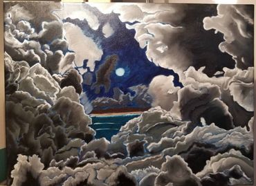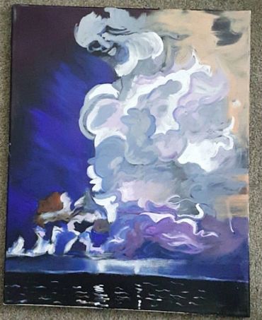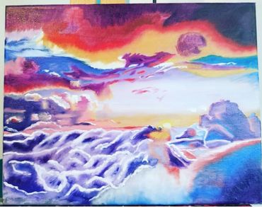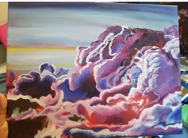 This is one of the first nude painting I ever painted for a class art project. I painted this in one class sitting. I like this painting because of the one eye the model had out and everyone in the art class painted the one eye.