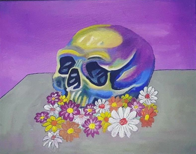 I did this painting for a friend of mine for a wedding present. She wanted Day the dead picture on her wall so this image is what I created